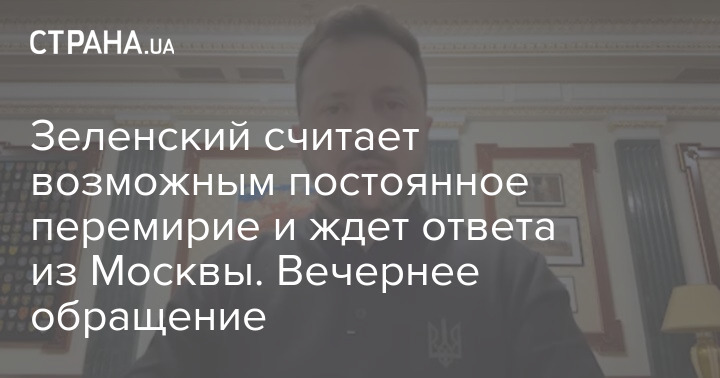 Зеленський вважає за можливе постійне перемир'я і чекає відповіді з Москви. Вечірнє звернення