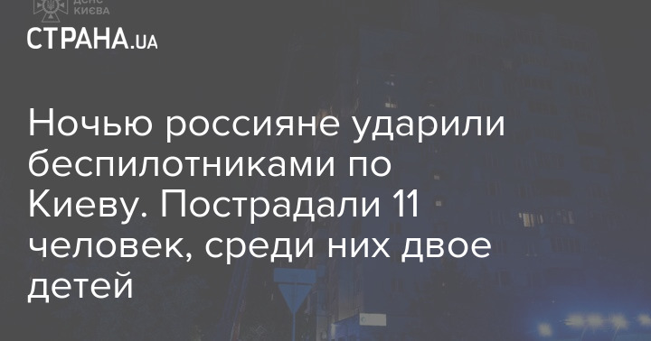 Сьогодні вночі російські БПЛА атакували Київ. Постраждали 11 людей, серед них двоє дітей. Про це повідомляє Національна поліція і ДСНС.