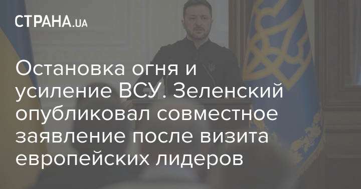 Зупинка вогню та посилення ЗСУ. Зеленський опублікував спільну заяву після візиту європейських лідерів