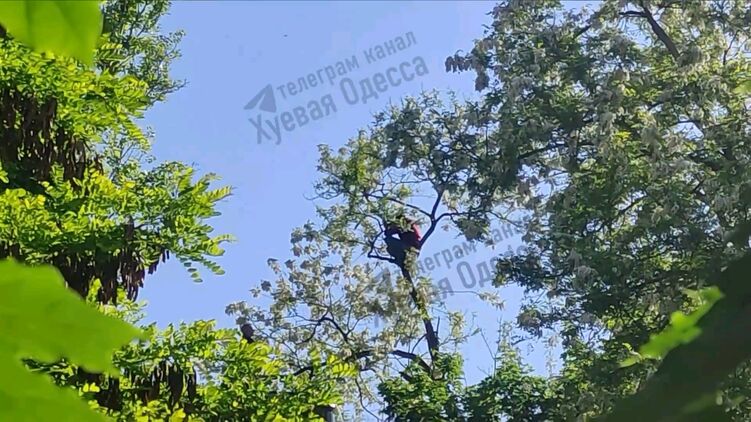 В Одесі чоловік тікав від співробітників ТЦК і заліз на верхівку дерева заввишки з п'ятиповерховий будинок.