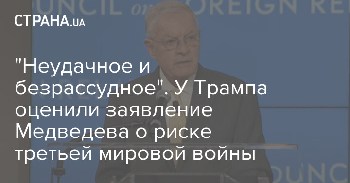 "Розпалювання страхів перед третьою світовою війною - невдалий, безрозсудний коментар Дмитра Медведєва, неналежний світовій державі. Президент Трамп працює над тим, щоб зупинити цю війну і покласти край вбивствам. Ми чекаємо на одержання меморандуму РФ (переліку умов), який ви обіцяли тиждень тому. Припиніть вогонь зараз", - написав Келлог.