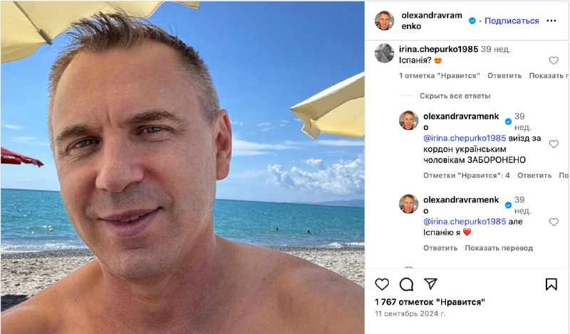 Одна з передплаток запитала під знімком: "Іспанія?" Автор профілю відповів, що виїзд за кордон українським чоловікам заборонено, але все одно любить Іспанію.