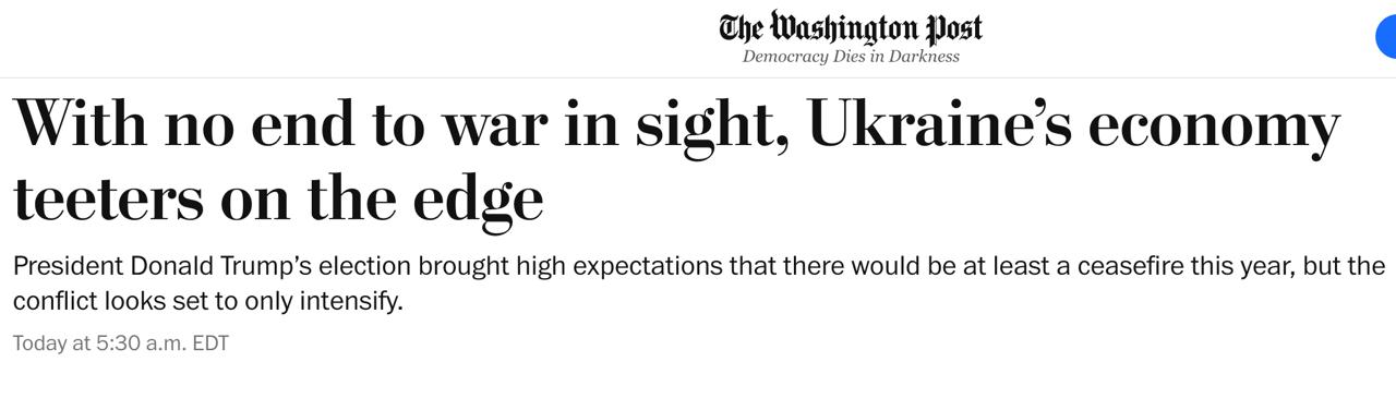 "Припинення вогню було в основі всіх економічних прогнозів і передбачалося, що воно може настати десь у середині 2025 року", - заявив газеті високопосадовець Офісу президента. Тепер, як він висловився, "позитивного впливу на економіку" цього року "більше не розглядається", хоча надії на 2026 рік все ще є.
