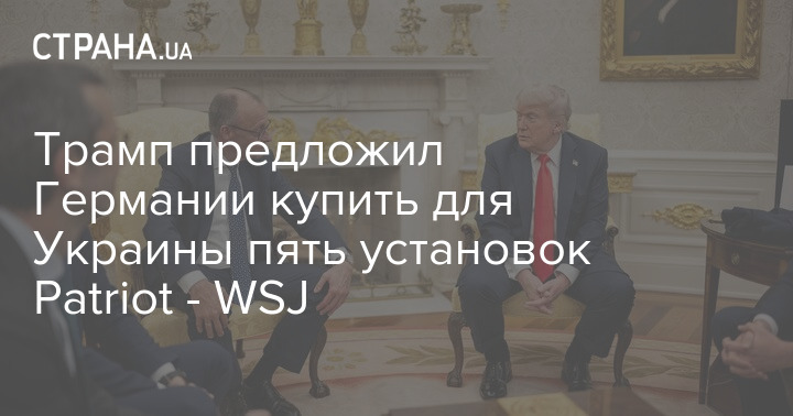 Президент США Дональд Трамп запропонував Німеччині купити для України п'ять настанов Patriot. Про це повідомляє The Wall Street Journal із посиланням на джерела.