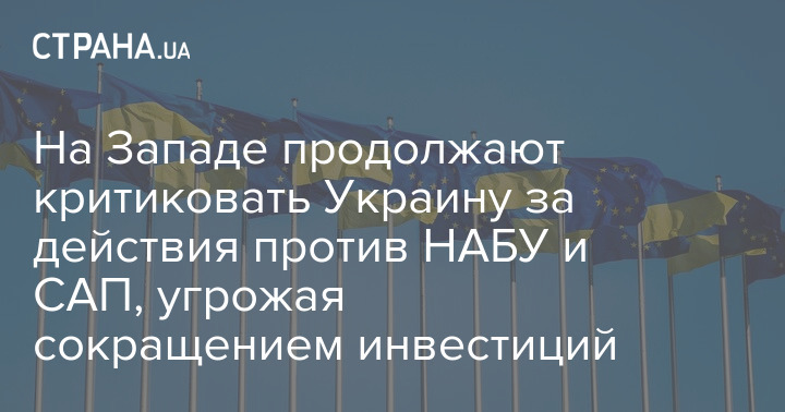 У міжнародних структурах та західних країнах продовжують критикувати Україну за дії проти НАБУ та САП. Обмеження повноважень цих органів може спричинити скорочення інвестицій в Україну.
