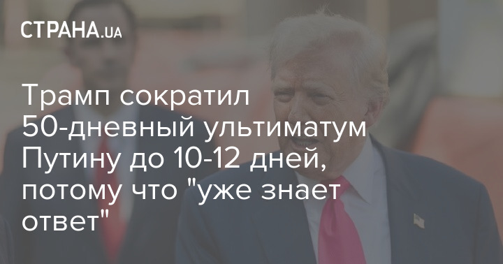 Президент США Дональд Трамп заявив, що скоротить свій 50-денний ультиматум Володимиру Путіну для згоди на перемир'я, бо вже знає відповідь.