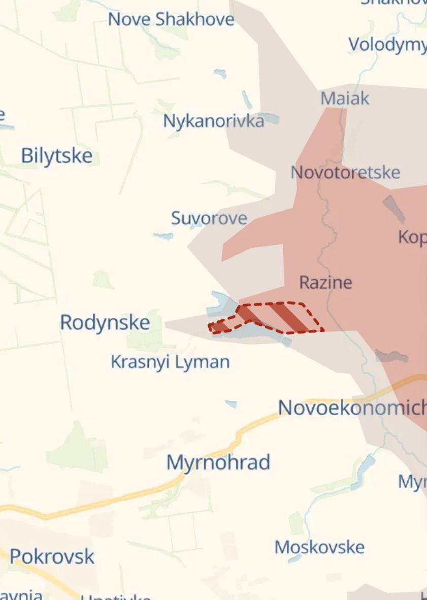 Війська РФ просунулися північніше Мирнограда у бік Родинського. А також на південь від Костянтинівки - у Яблонівки та Олександро-Калинове (у РФ кажуть, що обидва села захоплені).
