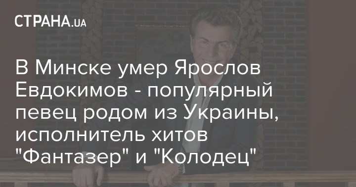 У Мінську помер популярний у 1980-і та 1990-і співак родом із Рівного Ярослав Євдокимов, автор та виконавець шлягеру "Фантазер". Йому було 78 років.