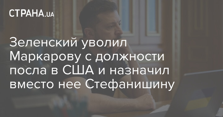 Президент Володимир Зеленський підписав укази про звільнення Оксани Маркарової з посади посла України у США та призначення на її місце колишньої віце-прем'єрки Ольги Стефанішиної.