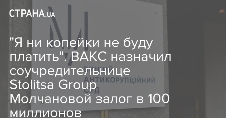 Вищий антикорупційний суд України призначив співзасновниці "Stolitsa Group" Владиславі Молчановій заставу у 100 млн грн без утримання під вартою. До цього прокурор вимагав 300 млн. грн.