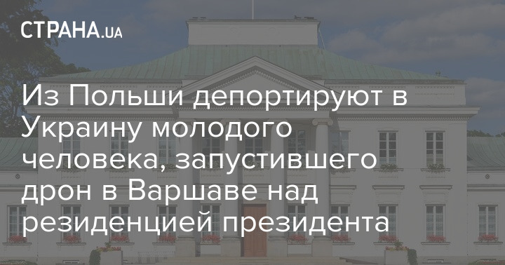 Влада Польщі депортує 21-річного громадянина України, який запустив безпілотник над палацом Бельведер у Варшаві - однією з резиденцій президента країни. На батьківщині його поки що не призовуть до армії, оскільки він не досяг 25-річного віку.