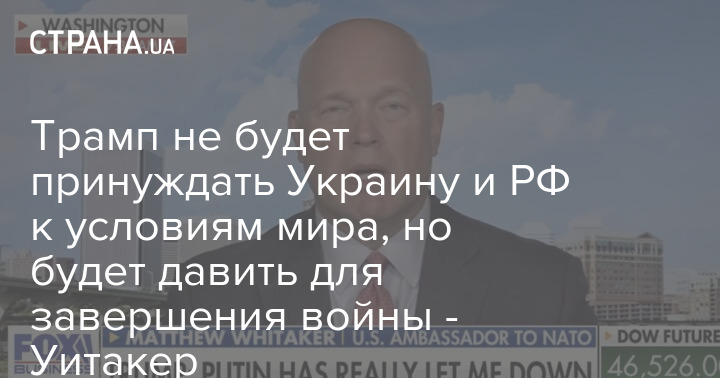 Трамп не примушуватиме Україну та РФ до умов миру, але тиснутиме для завершення війни - Уітакер