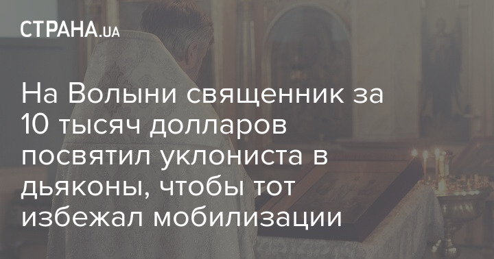 За даними слідства, волинський священик пообіцяв за 10 тисяч доларів присвятити військовозобов'язаного в диякони однієї з церков, завдяки чому чоловік отримав би відстрочку від мобілізації та був би виключений із реєстру "Оберіг".