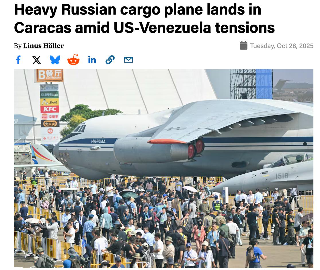 Російський транспортний літак Іл-76 приземлився в Каракасі на тлі чуток про ймовірну атаку США на Венесуелу.