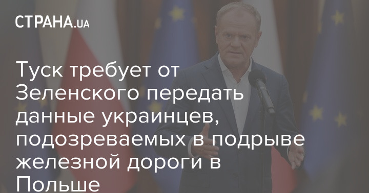 Прем'єр-міністр Польщі Дональд Туск вимагає від президента України Володимира Зеленського негайно надати дані громадян України, підозрюваних у вибуху на залізниці в Польщі.