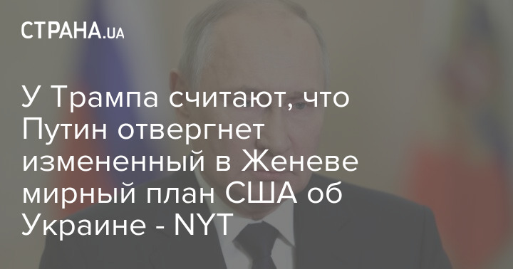 В адміністрації президента США Дональда Трампа вважають, що глава Кремля Володимир Путін відкине мирний план після змін, зроблених у Женеві.
