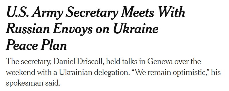"Деякі представники адміністрації Трампа вважають, що зміни у мирній угоді, вироблені за підсумками зустрічей американських та українських переговорників у Женеві, можуть призвести до того, що президент Росії Володимир Путін відразу ж його відкине", - йдеться у публікації.