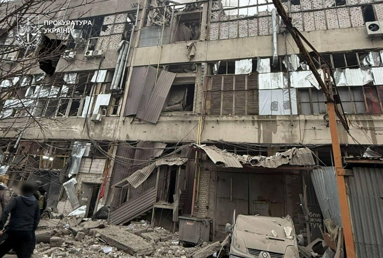 13.08 Фото підприємства у центрі Дніпра, куди був приліт балістики, публікує прокуратура.