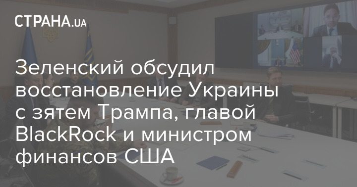 Президент України Володимир Зеленський слідом за прем'єр-міністром Юлією Свириденко провів онлайн-розмову з міністром фінансів США Скоттом Бессантом, зятем Трампа Джаредом Кушнером та головою компанії BlackRock Ларрі Фінком.