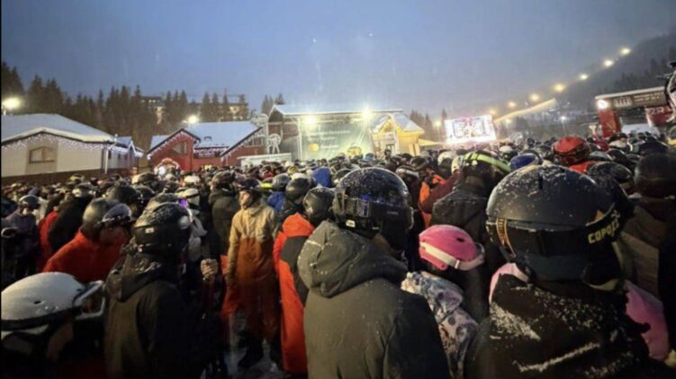 У Буковелі натовпи відпочиваючих штурмують підйомники і нудьгують у чергах за лижним спорядженням