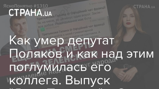 В истории смерти Полякова, которая произошла в карете скорой помощи, врачи которой пытались реанимировать почувствовавшего себя плохо депутата, много белых пятен. Пока многие политики выдвигали свои версии случившегося и с прискорбием говорили о трагедии, в чате "Слуг народа" депутат Галина Третьякова порадовалась смерти Антона.