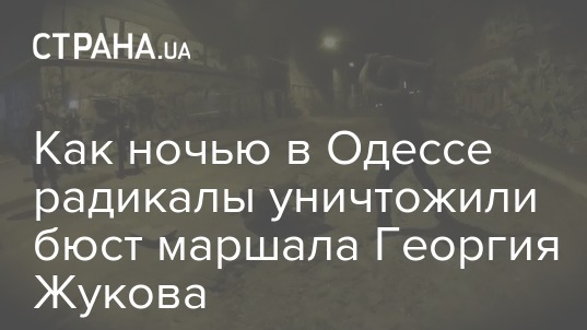 В социальной сети Facebook опубликовано видео, как под покровом ночи в Одессе повалили, унесли, а потом и разбили молотом бюст советского маршала Георгия Жукова.
